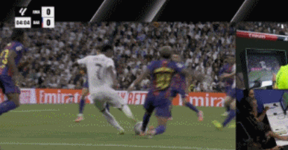 第12分钟,VAR介入之后再度做出了改判:姆巴佩外围直接一脚外脚背爆射入网,皇马全队疯狂庆祝,随后主裁判听从视频裁判的意见之后,示意姆巴佩越位在先,进球无效,巴萨再度逃过一劫。